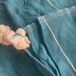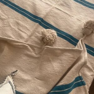 Couverture en Coton Beige à Rayures Bleu Turquoise