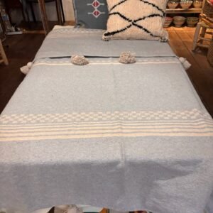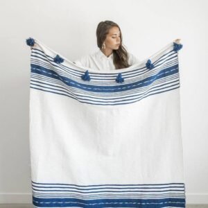 Couverture en coton blanc et bleu – 215 x 115 cm