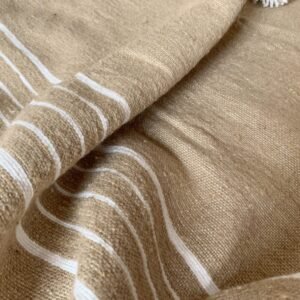 Couverture en Coton Beige & Rayures Blanches 3/2m