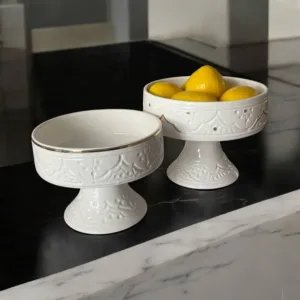 Élevez l’art de la présentation avec notre Grande Coupe à Fruits Empreinte Blanc, une pièce majestueuse façonnée à la main dans la plus pure tradition marocaine. Chaque détail est minutieusement travaillé, depuis les motifs en relief jusqu’aux touches délicates d’or véritable 12 carats, révélées lors d’une dernière cuisson artisanale. Son design épuré et élégant s’intègre parfaitement à toutes les décorations de table, apportant une touche de raffinement et de luminosité.