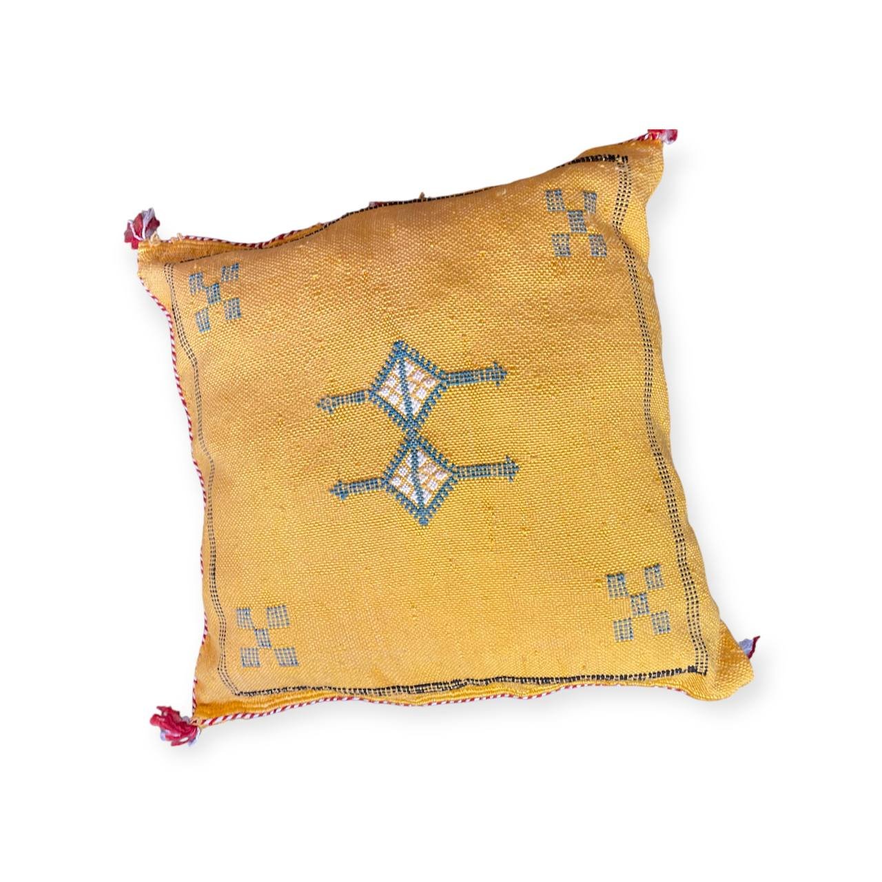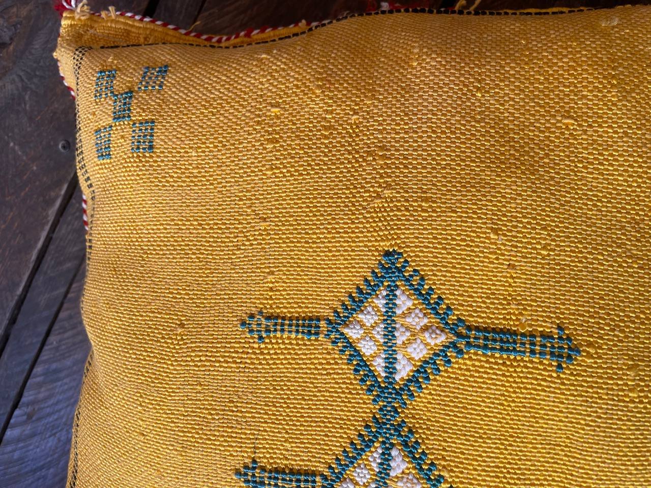 Ce coussin jaune en sabra (soie végétale de cactus) est un vrai rayon de soleil pour votre intérieur. Fait main dans le respect des traditions marocaines, il incarne l’artisanat authentique et durable. Sa teinte chaleureuse illumine n’importe quel espace, qu’il soit bohème, ethnique ou moderne.