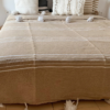 Grande couverture en coton beige tissée à la main au Maroc. Idéale pour lit double ou grand canapé. Format 300×200 cm