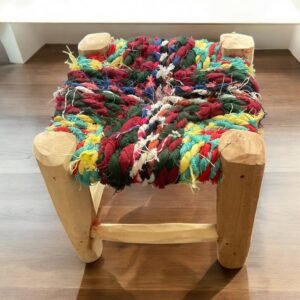 Ce petit tabouret marocain est bien plus qu’un simple objet de décoration : il incarne à lui seul un art de vivre, un respect de la matière, et une valorisation des savoir-faire artisanaux. Fabriqué à la main dans le sud du Maroc, il est conçu à partir de bois d’eucalyptus non traité, une essence locale réputée pour sa robustesse, sa durabilité et son grain naturel clair qui apporte chaleur et authenticité à tous les intérieurs.